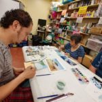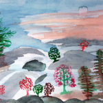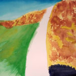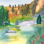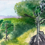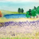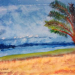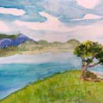 The Watercolor Landscape class of July 6, was meant to be a class that would focus on foreground details. The subject of vegetation, it’s tone, hue, and shade were explored carefully. Many of the students had already started a new landscape during the previous class. For this reason, they had the confidence to continue rapidly as they came in. The others would start a new fresh post-card size watercolor sketch and a new 9×6 in. landscape.