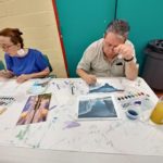 Aquellos estudiantes que estaban haciendo una nueva pintura en la segunda mitad de la clase, tenían la opción de paisaje, paisaje marino, paisaje semiurbano o una combinación. Este sería el comienzo de su última o segunda a la última pintura. Los estudiantes también planearon qué alimentos querían traer para el cierre de las clases de paisajes de acuarela antes del termino de las mismas.
