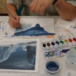 Those students that were doing a new painting on the second half of the class, had the choice of landscape, seascape, semi-urban landscape, or a combination. This would be the start of their last or second to last paintings. The students also planned what food they wanted to bring for the closing of the Watercolor Landscape Classes before leaving.