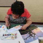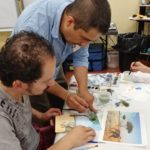 After the first hour of the class, the students were given the opportunity to participate in a demonstration of application techniques. The techniques were meant to give options on how to depict different types of trees, leaves, grasses, and flowers. The students could investigate different types of greens and brushes that were appropriate for their pallets.