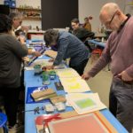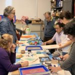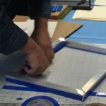 Imprimimos varios trabajos e incluso uno a dos colores mostrando la práctica forma de registro imprimiendo en un acetato transparente pegado a la mesa y usándolo como ventana.