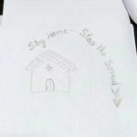 Then we had the final and slightly more complex exercise of this second session. Each student should write a sentence or a couple of words that reflect something positive that the quarantine has brought him. Then, based on those words or messages, a drawing was made, which should include that text as one more element of its artistic composition.