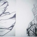 Then two groups of drawings were shown. The first group was of black and white drawings made only with line and without text. The second group, made up of drawings made with a loose line, included text, which was integrated into the composition. The text was treated as one more element of the drawing.