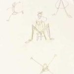 El segundo grupo, conformado por dibujos hechos con línea suelta incluía texto, el cual estaba integrado a la composición. El texto fue tratato como un elemento más del dibujo.