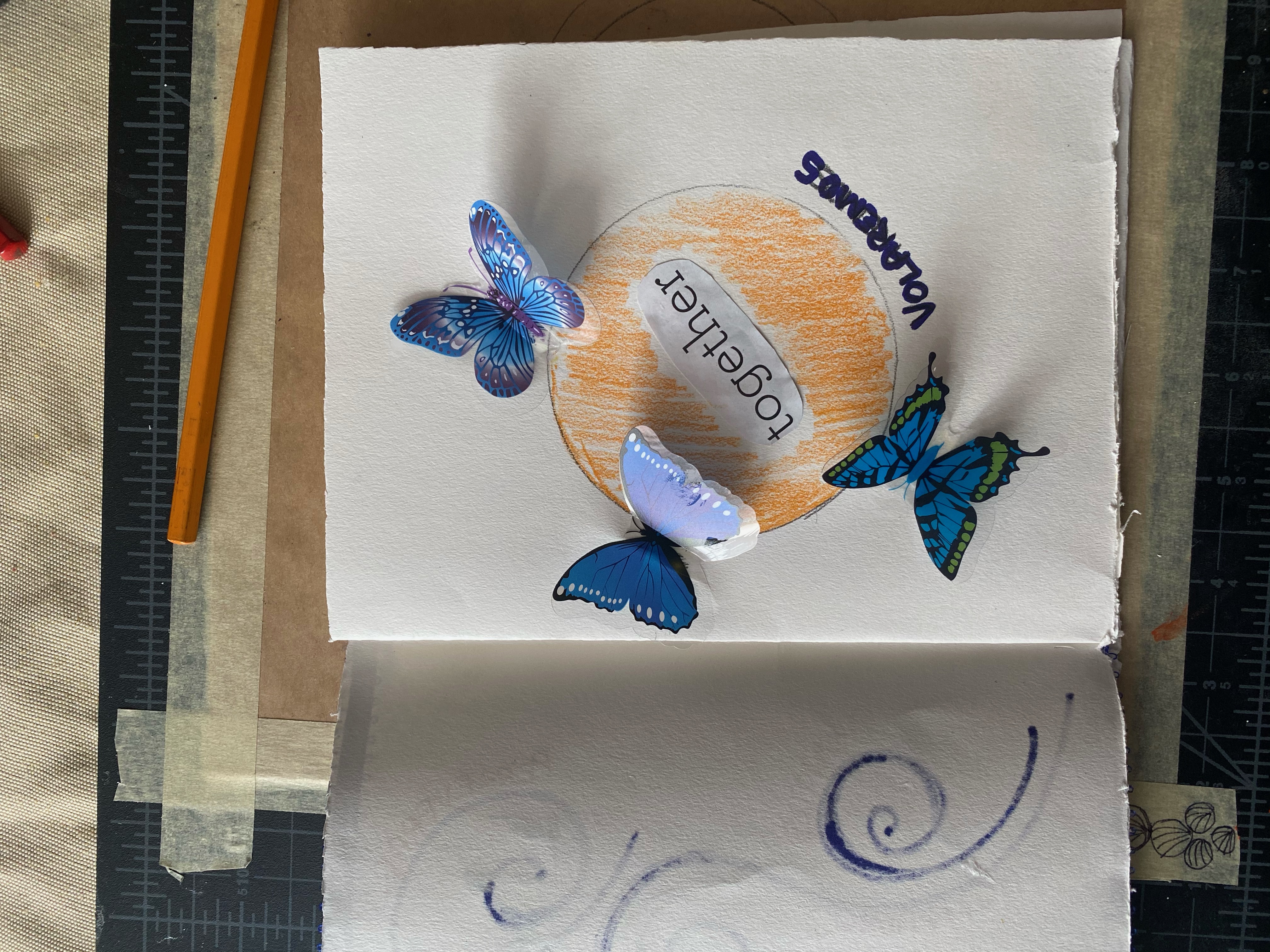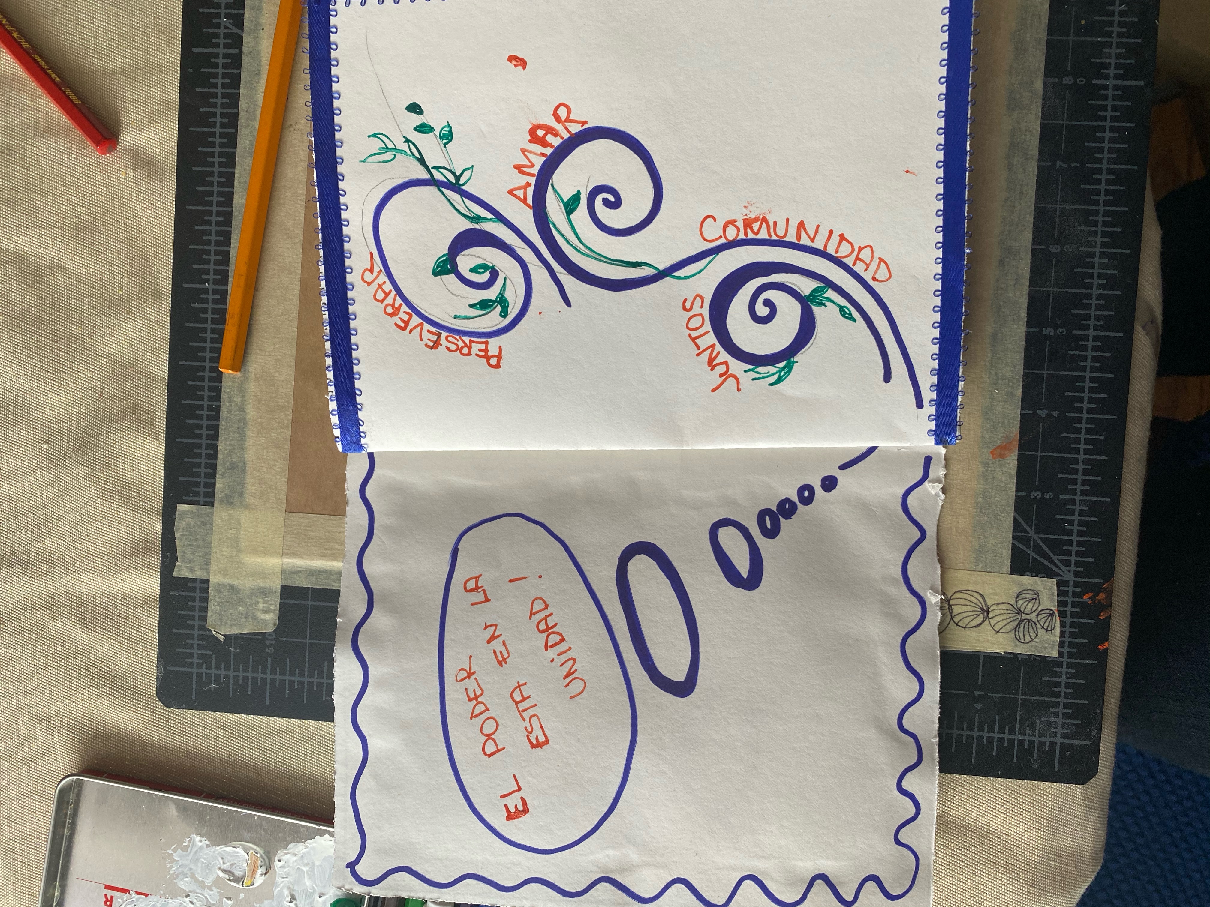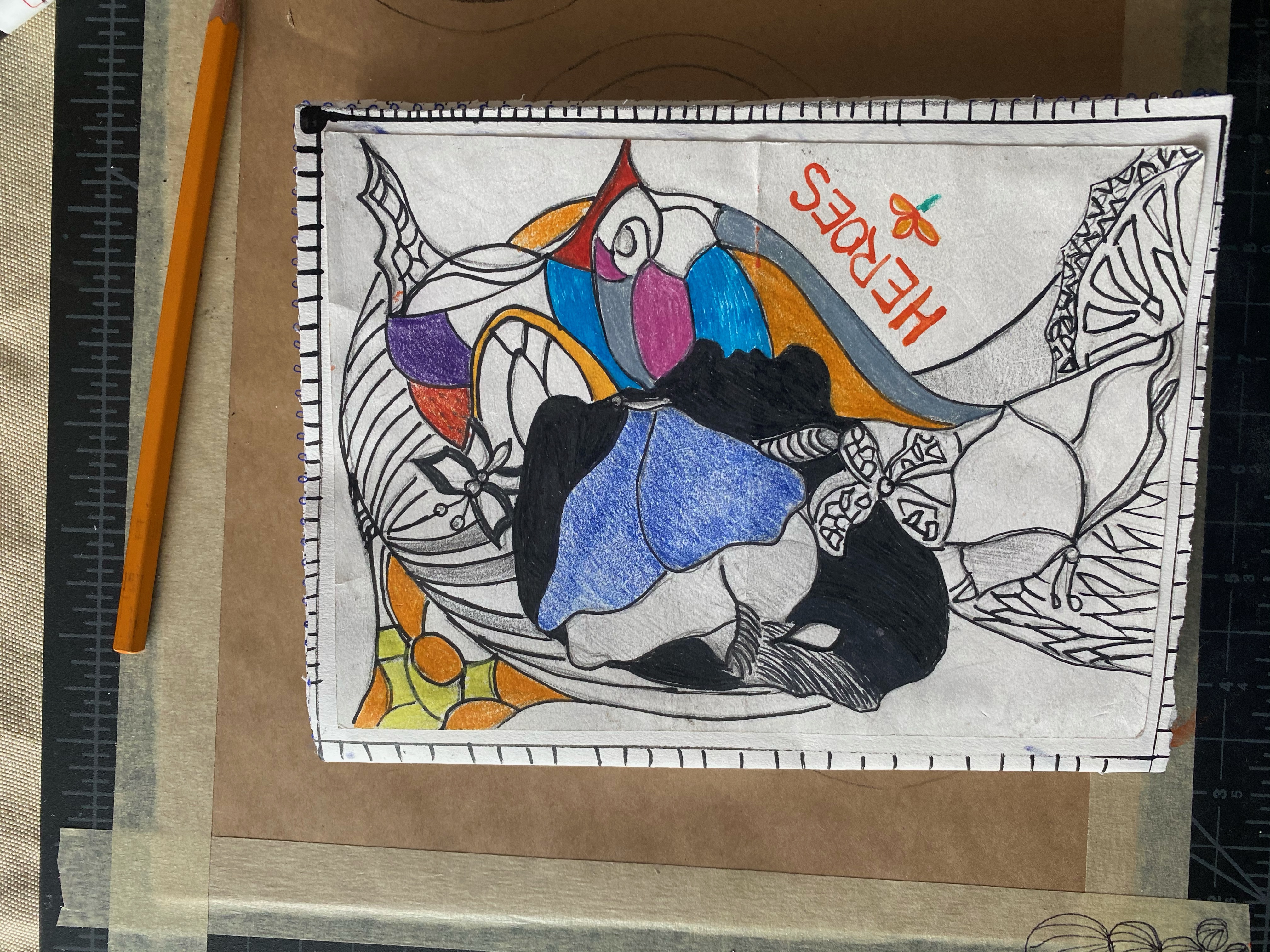 Como a Alpern le gusta dibujar, tenía un montón de materiales a mano, pero la profesora de arte de la escuela secundaria Caitlyn Notaro empezó a asignar a sus clases fanzines para que los hicieran en casa específicamente porque no necesitan pinturas o lienzos de lujo. Notaro enseña en los grados 9 a 12 en la Westmoreland High School en el norte del estado de Nueva York, y se inspiró en un post del artista y autor Austin Kleon en Instagram sobre la elaboración de fanzines de cuarentena. “No pude enviar suministros a casa”, explica Notaro. “Así que tuve que ponerme un poco creativa con lo que están haciendo”. Hizo un ejemplo utilizando papel de seda de una caja de regalo que tenía por ahí y Post-Its y luego les dejó que se desmelenaran. Un alumno incluso utilizó papel higiénico. “Le dije que ese va a valer bastante dinero, ya que todo el papel higiénico se ha acabado”, bromea. En el momento en que hablamos, Notaro les ha hecho hacer fundas y documentar lo que han comido, pero dice que están pidiendo más tareas. Está planeando hacerles pintar fanzines con posos de café.