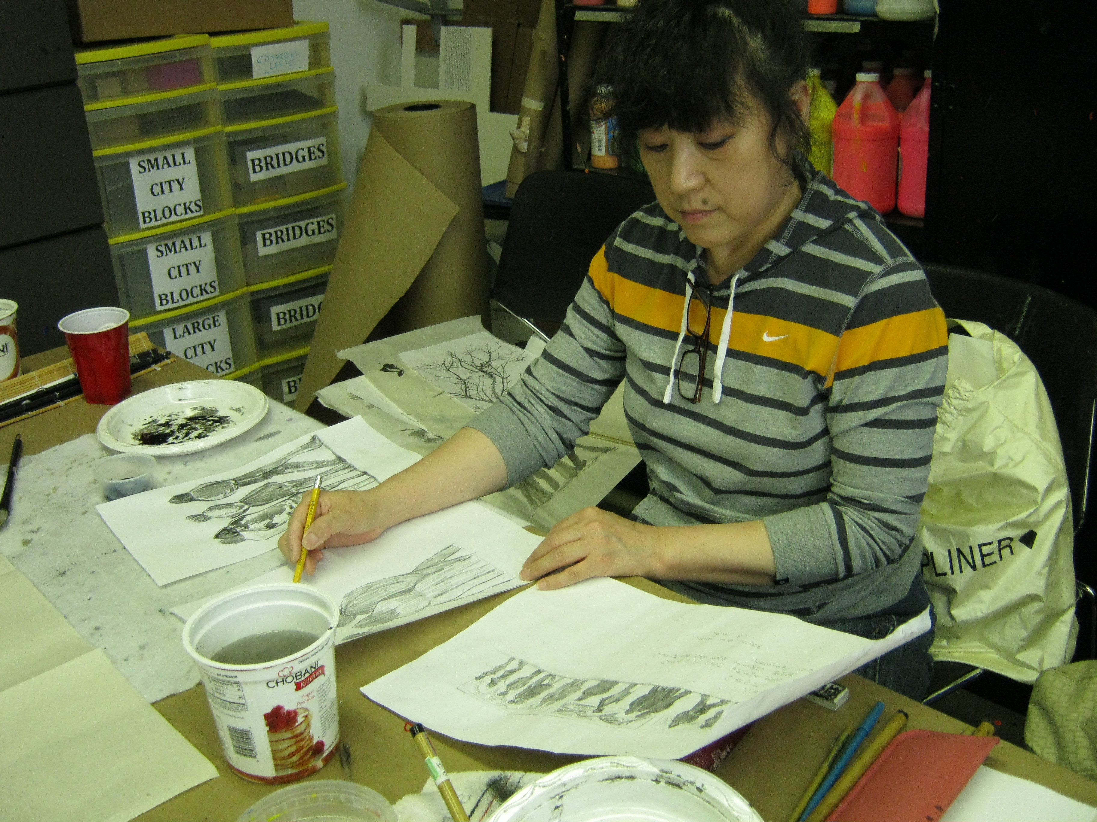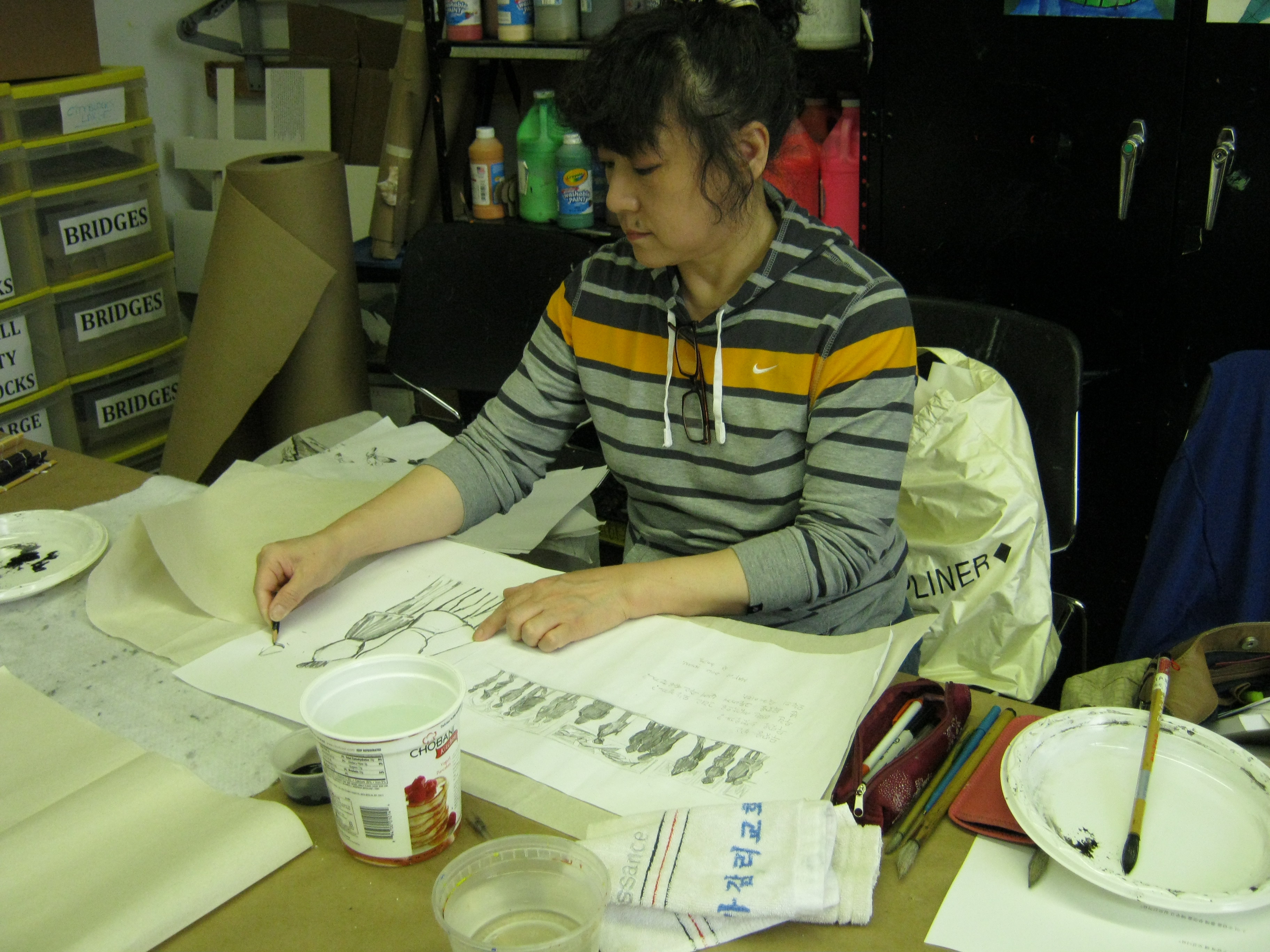 (Students keep creating and adding more pages on their art journal)