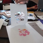 During the second session of the print making workshop, students cut stencils and used soft pastels to create unique images.
