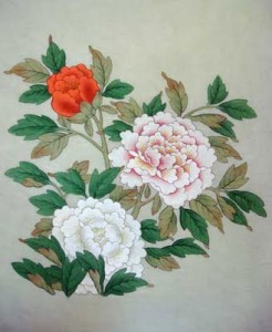 민화 Korean Folk Painting with Seongmin Ahn – section 5 June 18, 2011 Seongmin Ahn Leave a comment 5주: ‘모란도’ 또는 ‘연화도’ 계속됨 수업 목표: 수강생들은 두번째 층의 색감을 입힙니다. 색감을 입히기 전 ‘발림’기술을 배우게 될 것입니다. ‘발림’이란 그라데이션 효과를 사용하여 색감을 입히는 독특한 기법입니다. 또한 다음 수업을 위해 종이를 코팅해 놓을 것입니다.