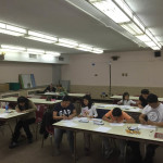 Participants started learning about patterns, conventions and symbols involved in the making of mandalas. They practice making their designs. After moving from the Queens Library to the Queens Museum, in this class they worked colaborativly making a mandala using the tools for the first time.