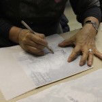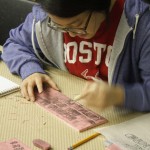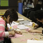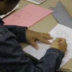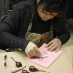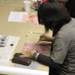 1. Using tracing paper and transfer paper, students transferred sketch onto linoleum.