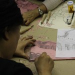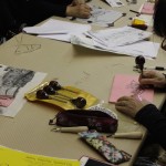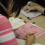 1. 트레이싱지와 먹지를 이용해서 숙제로 해오신 스케치를 다듬고 고무판에 옮겨 그렸습니다.