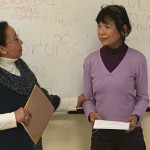 Nuestra primera clase de Inglés se llevó a cabo en la biblioteca de Long Island City. Nos presentamos a nosotros mismos con la información básica acerca de dónde somos y cuánto tiempo hemos vivido en América. Luego, los estudiantes se dividieron en grupos de a dos e hicieron unos a otros algunas preguntas en profundidad, usando las palabras en ingles ( what ) qué, ( when ) cuándo, ( why ) por qué, ( Where ) dónde y ( how ) cómo que son las principales palabras de interrogación. Compartieron detalles de sus vidas, tales como sus comidas favoritas , que los motiva a tomar esta clase de Inglés. Luego se presentaron entre sí. Después de las presentaciones leimos sobre la vida del artista Zhang Hongtu. Luego de lo cual respondieron a las palabras interrogativas en ingles ( what, how, where,etc.) aprendidas previamente armando oraciones interrogativas sobre sus vidas, ¿ de dónde es? ¿Cuándo llegó a América ? Acto seguido, revisamos en imagenes los primeros trabajos de Zhang Hongtu, aquellos hechos cuando era aun estudiante en China. Esta parte de la clase incluyó reflexiones sobre el trabajo titulado “Tiempo de la rotura” y ” Naturaleza muerta”. Pusimos atencion a una cita de Zhang Hongtu que es particularmente relevante para permitir a los estudiantes desarrollar una interpretación personal su obra así como de otros artistas cuyas trabajos estaran tambien presentes en QM. “El malentendido es aceptable…… Se puede pensar de esta o aquella manera. Yo sólo brindo la oportunidad de pensar y sentir de una manera diferente con mis imagenes.”